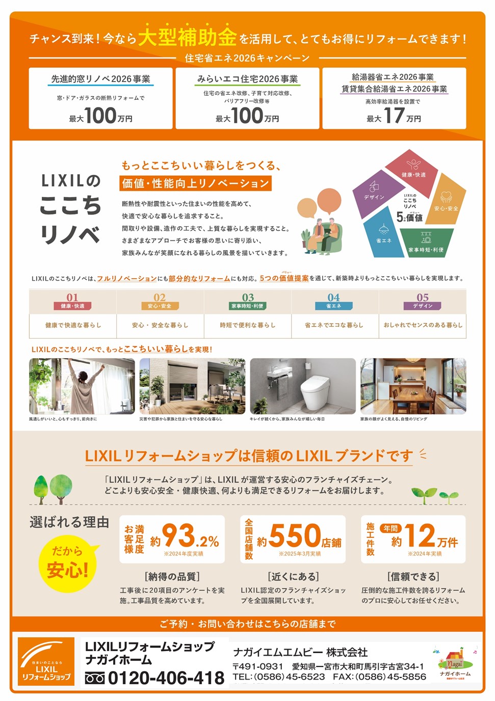 LIXILリフォームショップ ナガイホームは 7つの安心で最高のリフォームをお届けします。