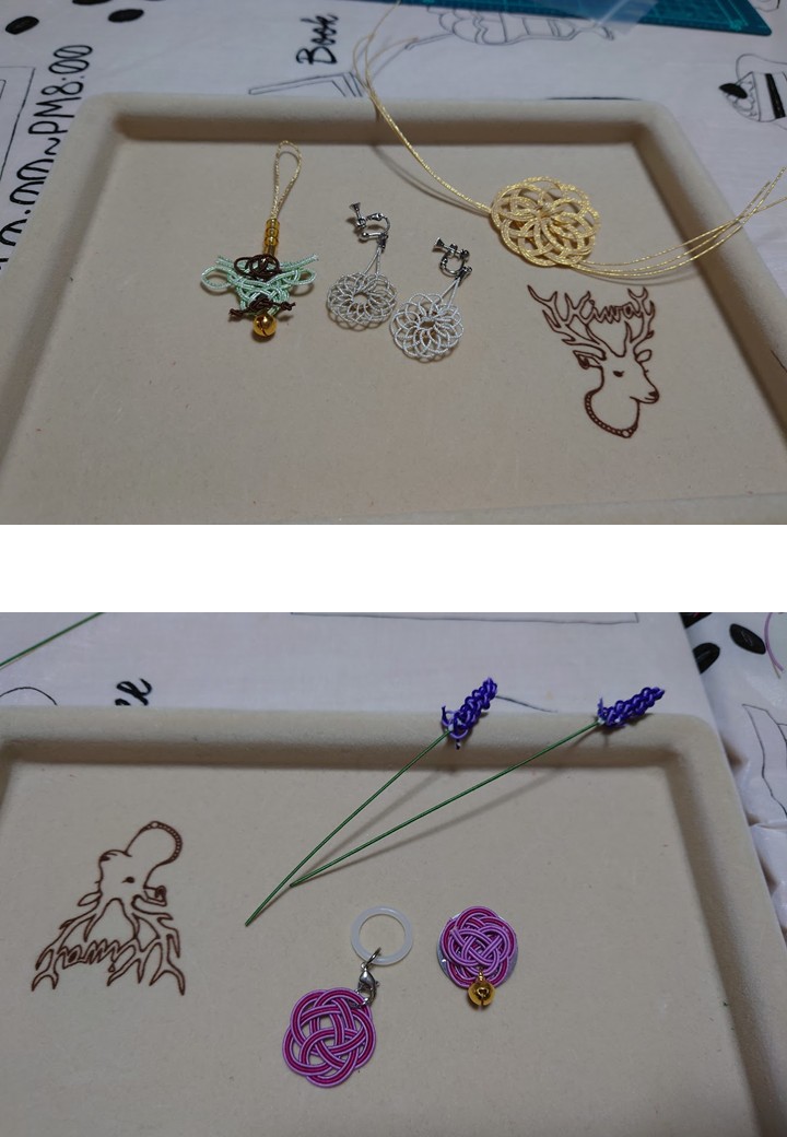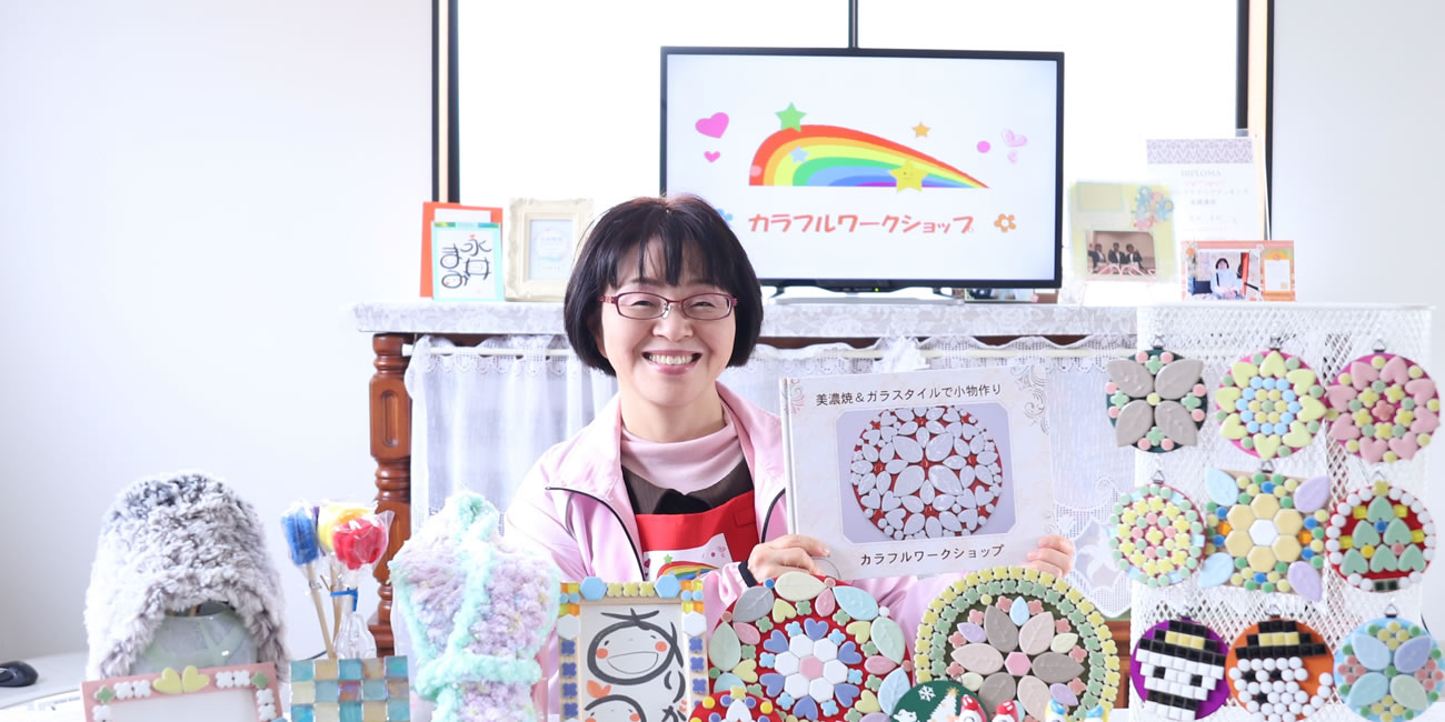水引や美濃焼タイルでアクセサリーや雑貨を作ったり、ワークショップをしています。