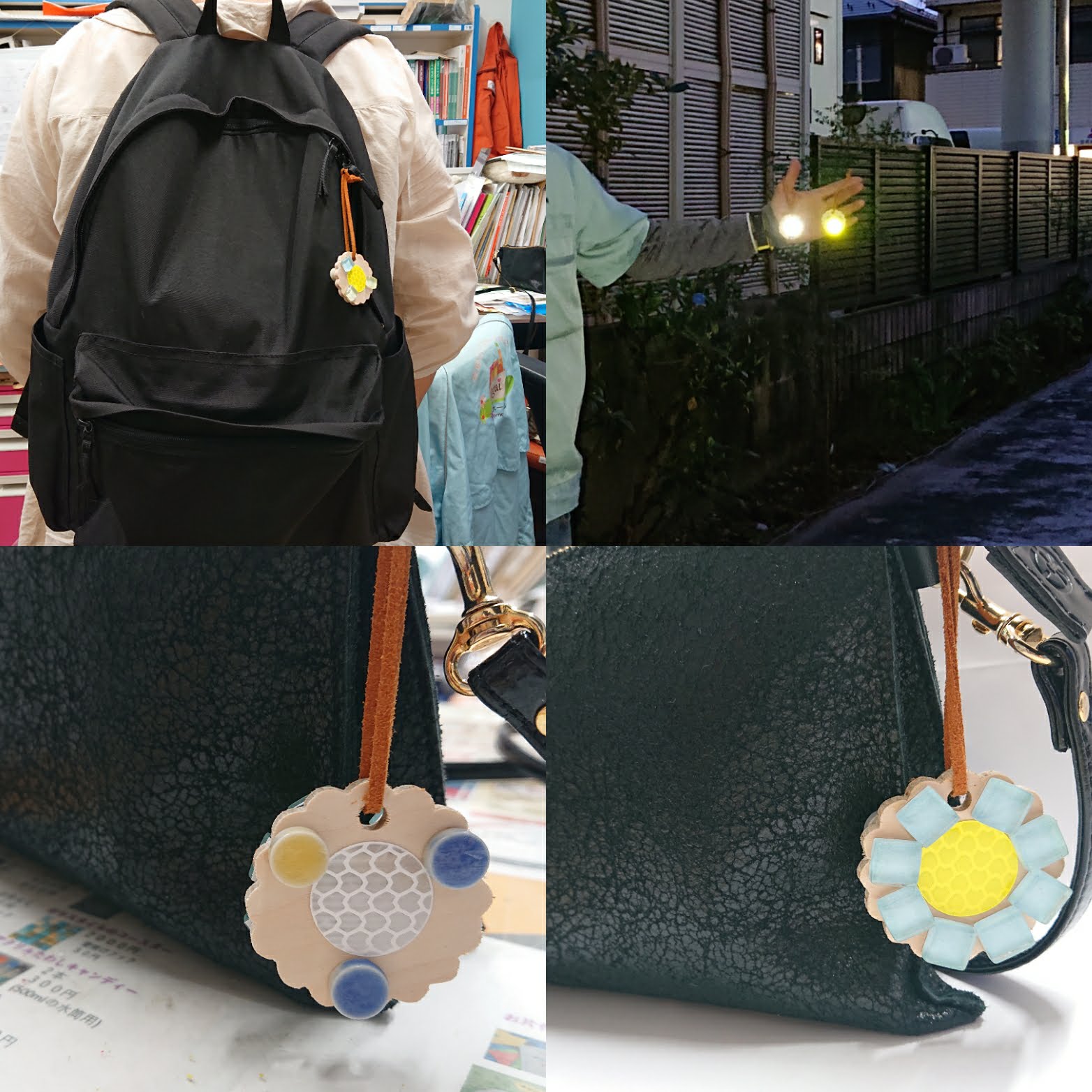 車に自分の存在を見つけてもらうってとっても大事!そこで高輝度反射材を使ってお洒落でかわいい光るキーホルダーを一緒に作りませんか?部活や塾で遅くなったり、犬の散歩やウォーキング、通勤、通学など子供から大人の方まであなたの大切な人のために。長い紐を付ければ首から下げる事もできます。